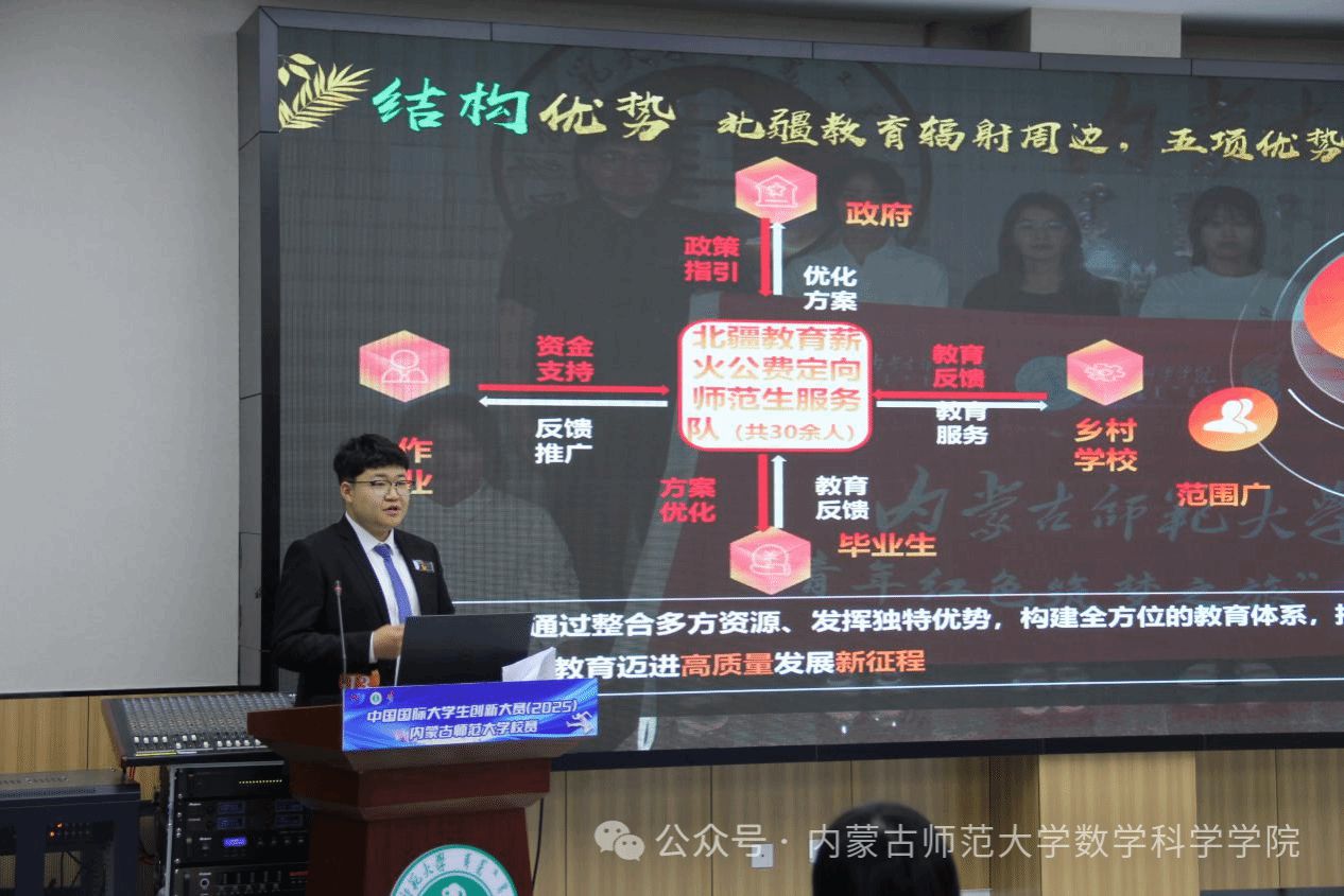 6月7日,以永利官网 2023 级数学与应用数学 4 班白昊杨为项目负责人与2024级数学与应用数学3班张妍茹、胡雅璇,2024级统计学班郭珈伊为团队成员的“北疆教育薪火公费定向师范生服务队”项目组在中国国际大学生创新大赛(2025)永利3044noc校赛中脱颖而出,斩获校金奖荣誉。