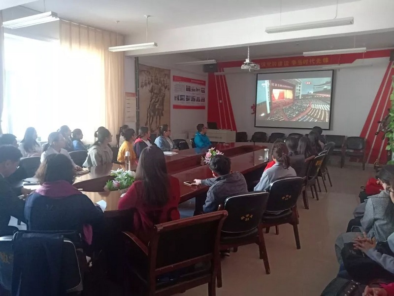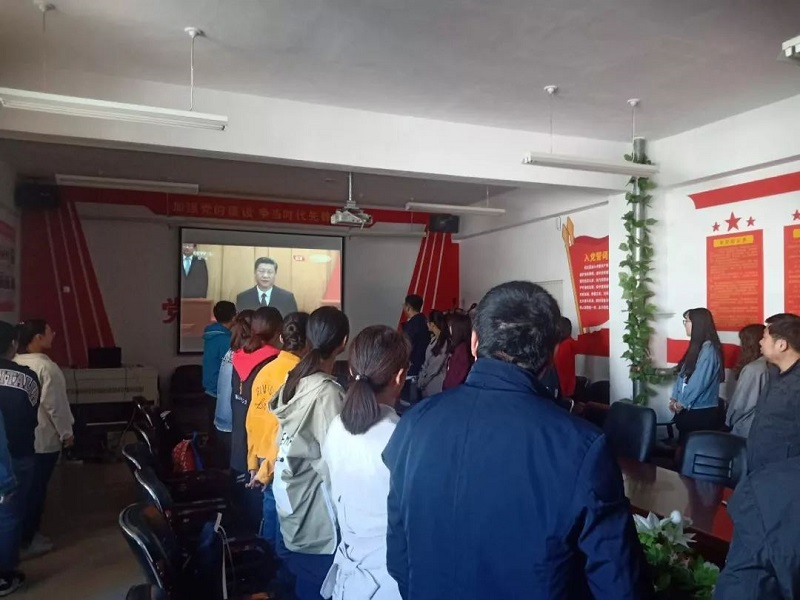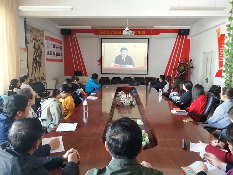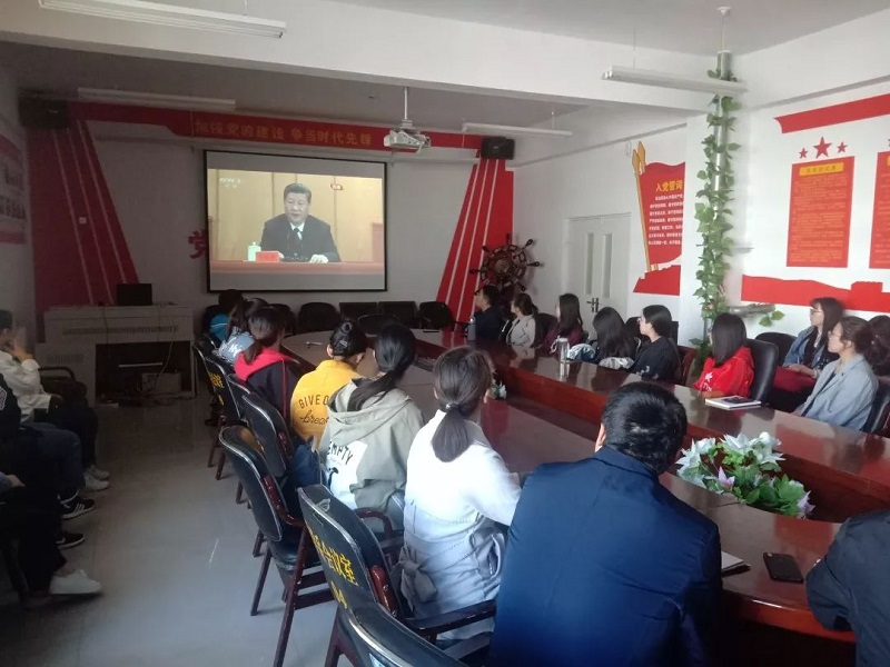 学院党总支书记扎其劳教授,学院党总支副书记、副院长季建光老师,督导员乾达门老师,团学干部3人,教师代表3人,团员36人于永利3044noc盛乐校区学院楼会议室观看大会直播。