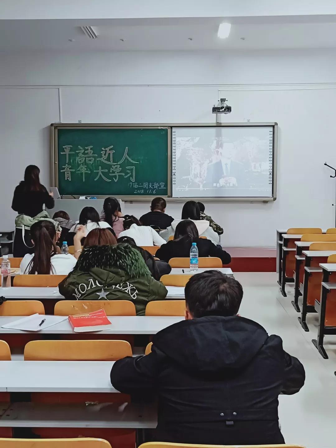 2018年11月6日19:30,永利3044noc各团支部于科技楼开展“青年大学习”交流会,组织支部成员观看《平“语”近人》。