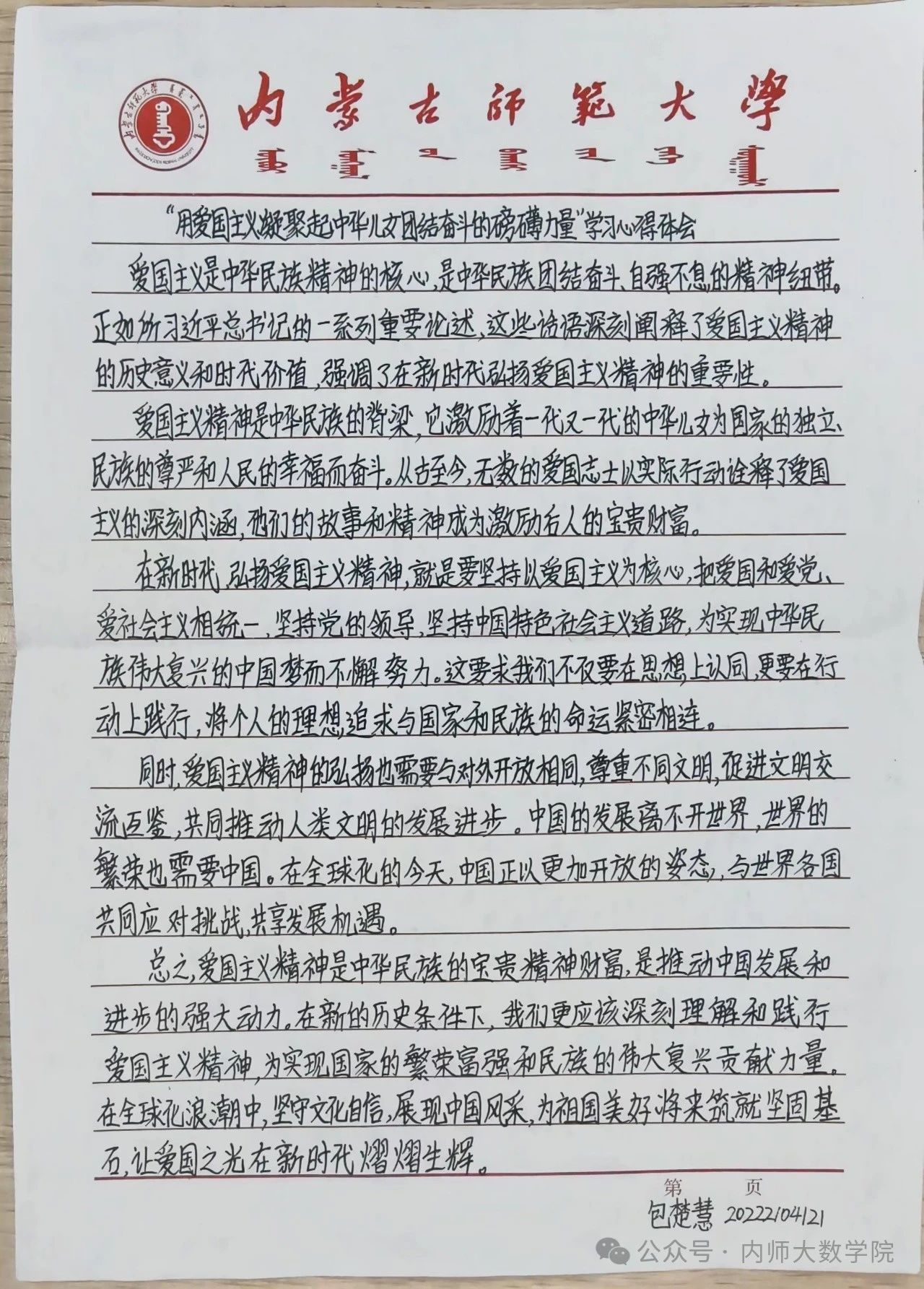 11月,学生党支部各党小组专题学习了习近平总书记关于弘扬爱国主义精神的重要论述,并开展了研讨交流和心得分享。通过专题学习引导党员同学矢志不渝地感党恩、听党话、跟党走,进一步强化中华民族共同体意识培育。