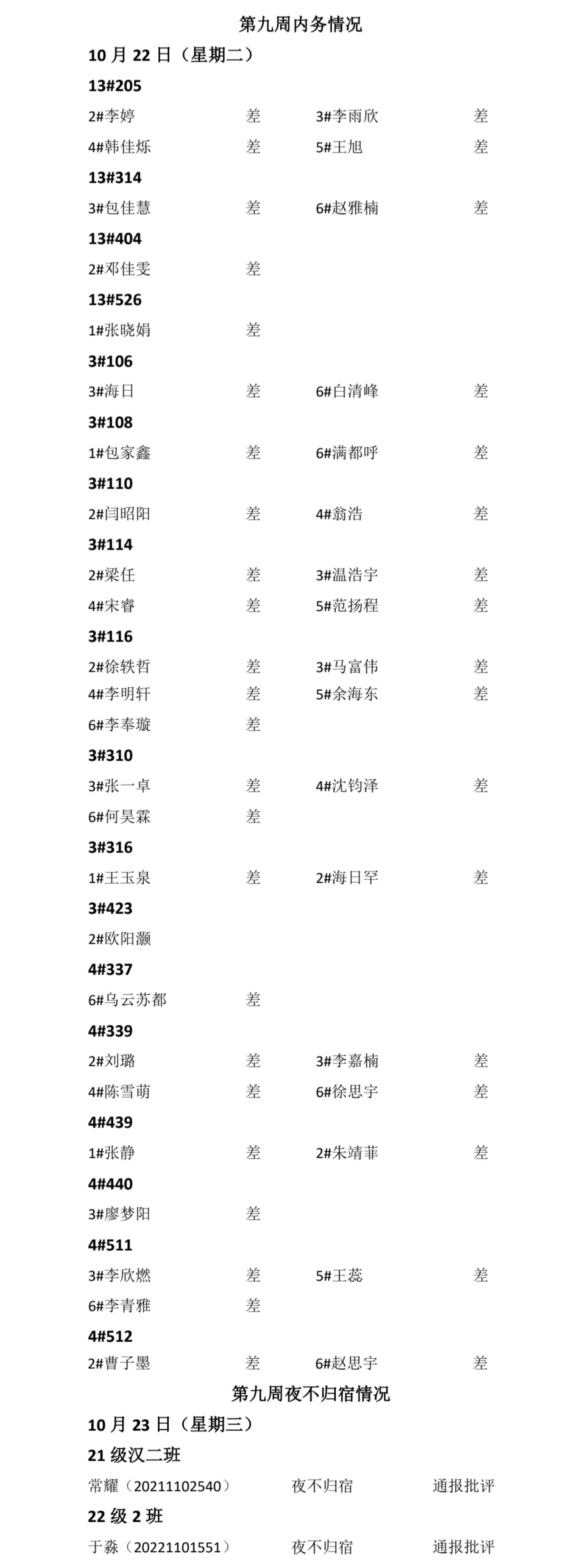 永利3044noc2024——2025年度第一学期第九周通报情况