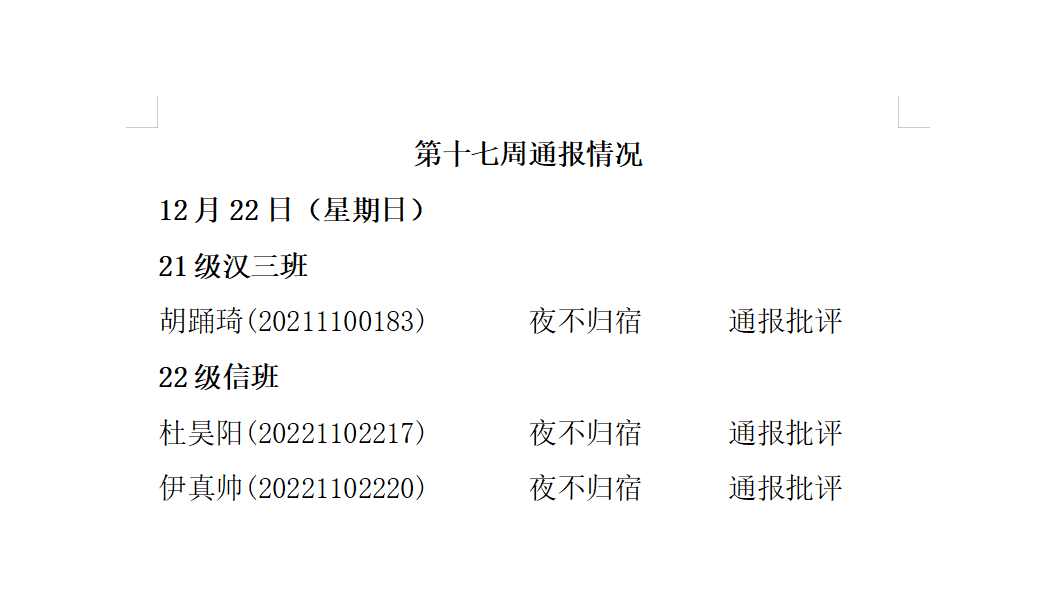 永利3044noc2024——2025年度第一学期第十七周通报情况