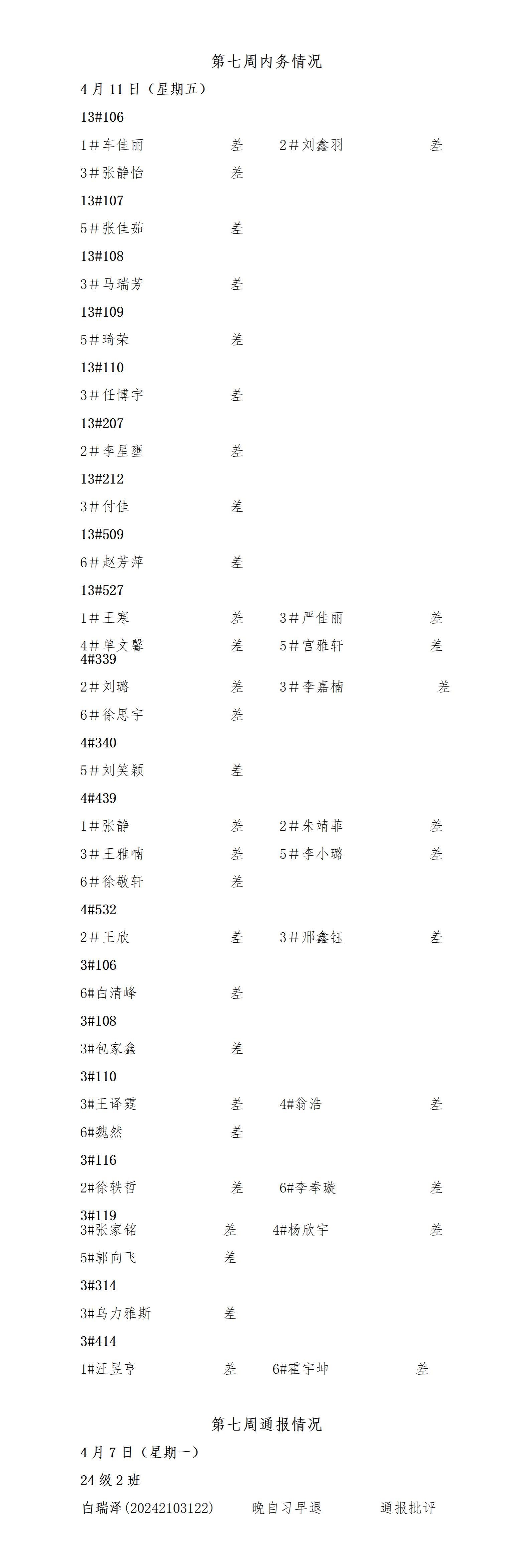 永利3044noc2024——2025年度第二学期第七周通报情况