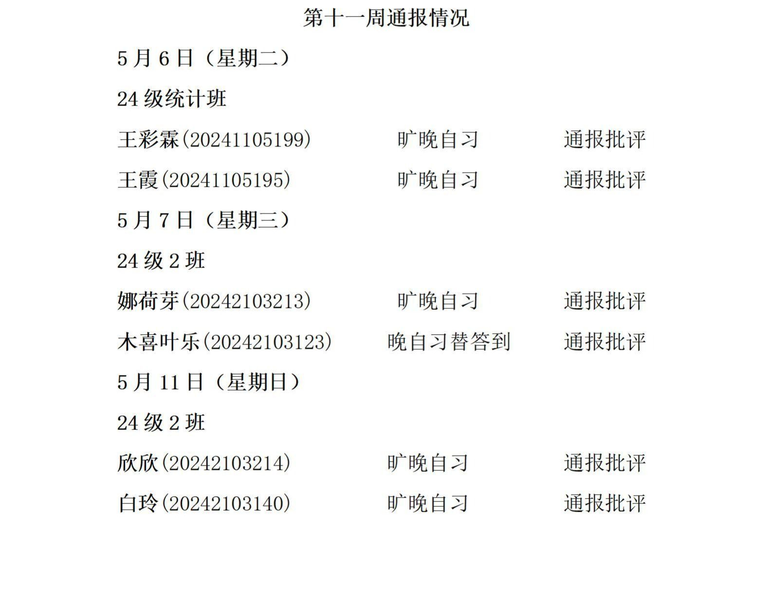 永利3044noc2024——2025年度第二学期第十一周通报情况