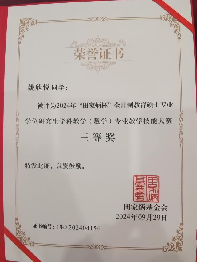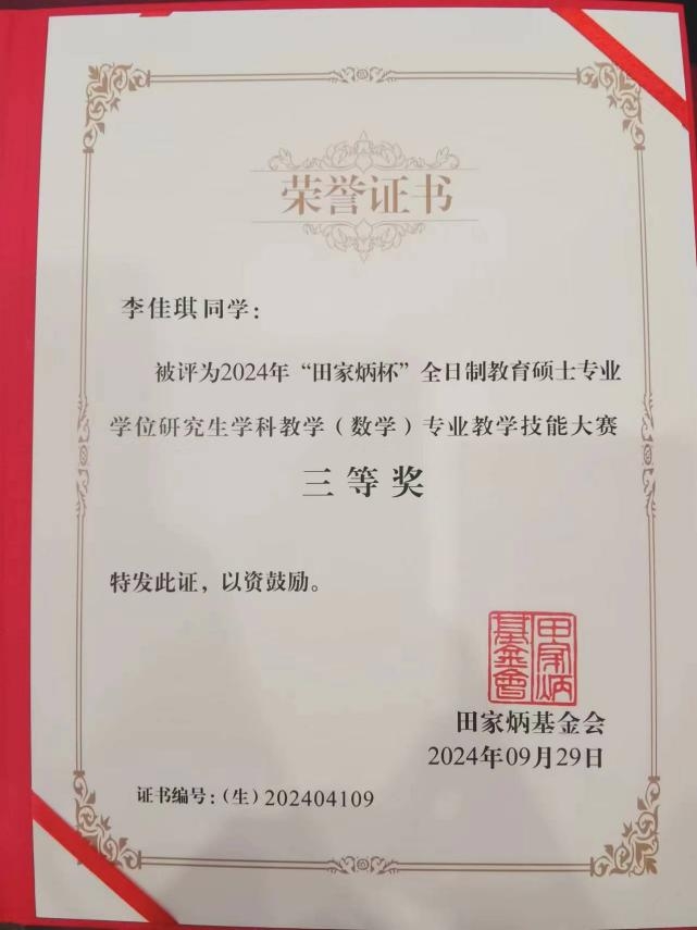 自6月8日开始,三位指导教师与参赛选手一起分析教科书内容、梳理教学设计思路、讨论研究教学创新点、模拟授课后评价修改精益求精备赛决赛。指导教师们倾囊相授,提出宝贵建议,参赛选手们不断突破、力争上游。经过9月28日一天紧张而激烈的角逐,永利官网2023级研究生于家祺同学荣获一等奖,李佳琪和姚欣悦同学分别荣获三等奖,刘雨晴同学荣获优秀教学设计奖,三位指导老师被评为优秀指导教师。
