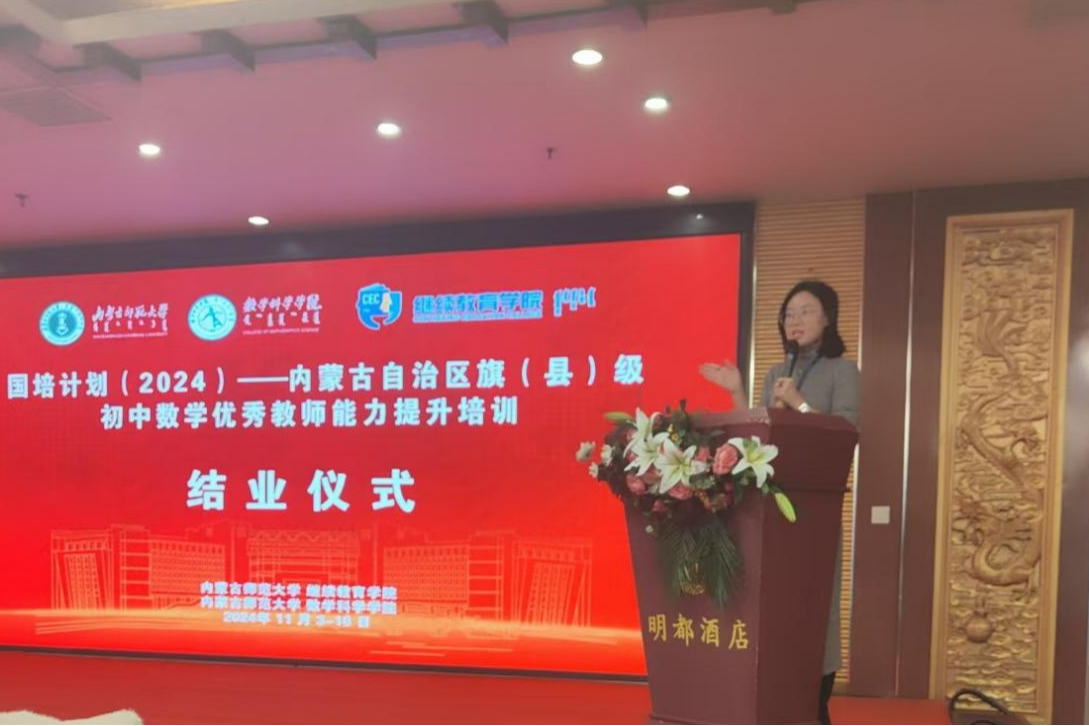 2024年11月15日,“国培计划(2024)——内蒙古自治区旗(县)级初中数学优秀教师能力提升”培训在山东省淄博市圆满落幕。本次培训由永利3044noc继续教育学院主办、永利3044noc承办,学员是来自全区各盟市选派来的50位旗(县)级初中数学优秀教师,旨在为各盟市教科研质量的提高注入新动力。培训为期两周:在永利3044noc集中研修1周,在山东省淄博高新区实验中学跟岗实践1周。培训班班主任及全体培训学员出席了结业仪式,仪式由郑佳璇老师主持。