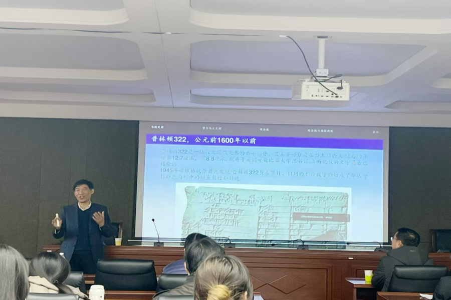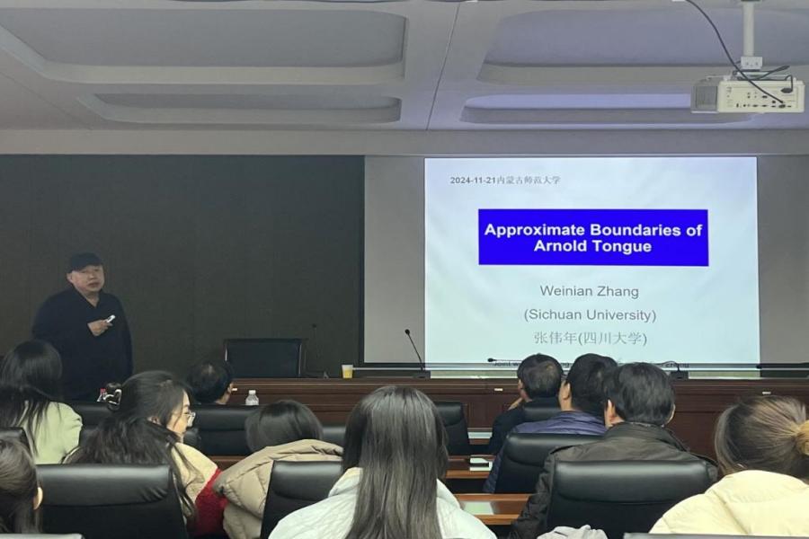 11月21日下午,无穷维哈密顿系统及其算法应用教育部重点实验室、教育部数学与应用数学专业虚拟教研室、内蒙古应用数学中心系列讲座在我校赛罕校区文史楼一号会议室举行。国家杰青、江苏国家应用数学中心主任、南京大学数学学院秦厚荣教授和国家杰青、四川大学数学学院原院长张伟年教授,应邀分别作了题为“从勾股定理谈起”、“Approximate Boundaries of Arnold Tongue”的学术报告。我校原党委书记、内蒙古应用数学中心主任阿拉坦仓教授及永利官网师生50余人聆听了本次报告。报告由包霞副院长主持。