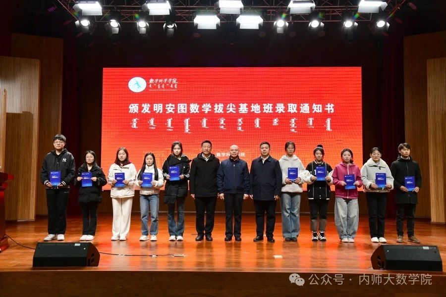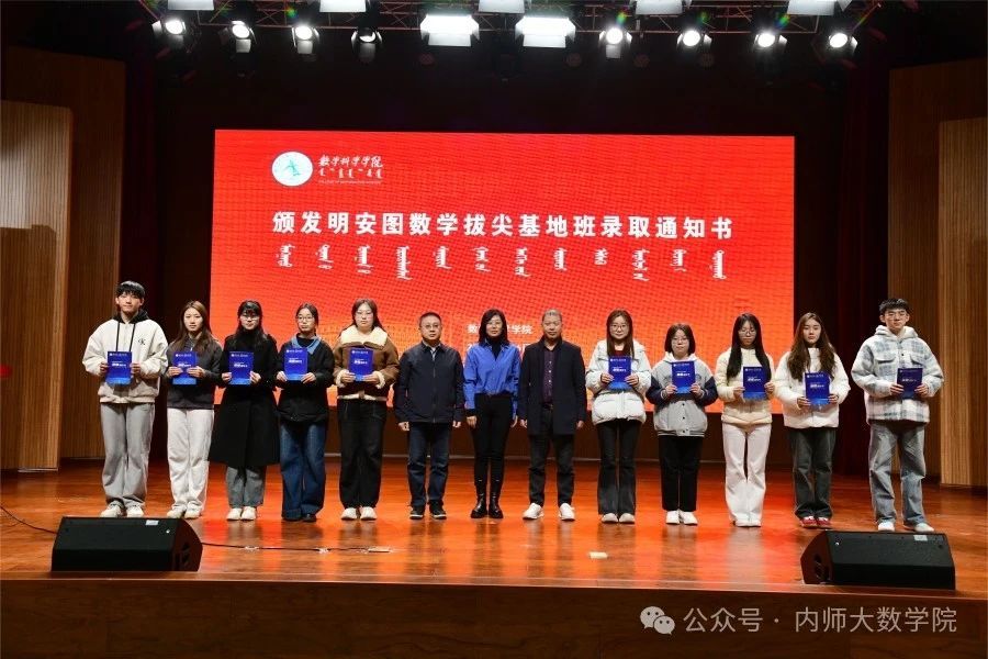 在学校党委和相关部门的大力支持下,永利3044noc积极申报自治区基础学科人才培养基地建设点,成功获批建设“明安图数学拔尖学生培养基地”。经过选拔,来自永利3044noc的20名2024 级同学成为明安图数学拔尖基地班首批学生。3月6日下午,永利3044noc为20名学生颁发了录取通知书。