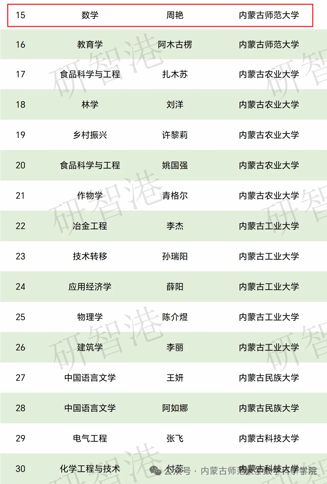 近日,2025年内蒙古自治区“高等学校青年科技人才发展项目”及首批“五大任务”关键技术研究专项评选结果正式揭晓,永利官网教师周艳副教授成功入选内蒙古高等学校青年科技英才,为学院科研事业发展再添佳绩。