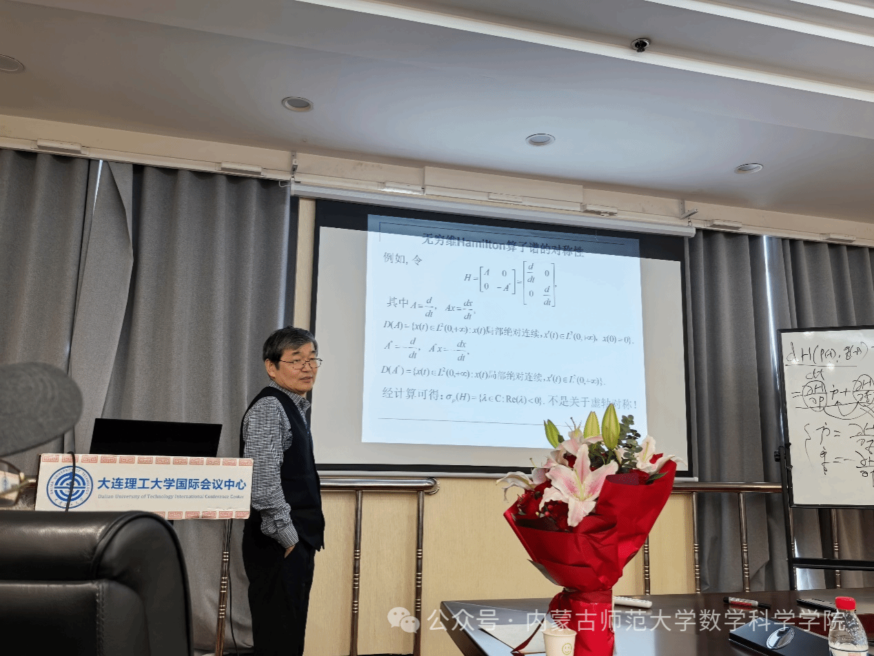 2025年5月16日,无穷维哈密顿系统及其算法应用教育部重点实验室主任阿拉坦仓教授应大连理工大学永利3044noc邀请,在可积系统与数学机械化研讨会上作题为“无穷维Hamilton算子的谱对称及其完备性介绍”的学术报告。