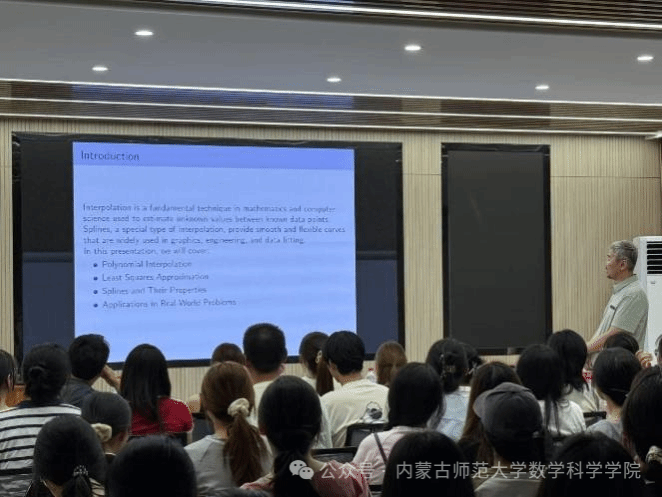 讲座内容丰富,涵盖了插值算法的多个重要方面。Renchin-Ochir Mijiddorj教授首先从多项式插值和拉格朗日插值的基本原理入手,深入浅出地介绍了这些算法在数值计算中的应用和重要性。教授详细分析了矩阵对插值结果的影响,并通过案例探讨了插值过程中可能遇到的过拟合问题以及牛顿插值方法的应用。此外,教授强调了最小二乘近似作为一种关键数值计算方法,在插值过程中降低误差并提高拟合效果的作用。