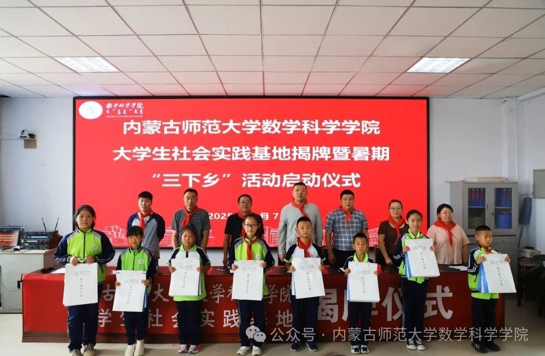 7月7日上午,永利3044noc大学生社会实践基地揭牌暨暑期"三下乡"活动启动仪式在四子王旗实验小学隆重举行。四子王旗实验小学党委副书记李玉珠、副校长陈云、大队辅导员张超、永利3044noc永利3044noc党委书记张伟、党委副书记副院长季建光、学生工作与就业办公室主任刘沙沙、副主任萨如拉出席仪式,仪式由永利3044noc团总支副书记阿茹罕主持。四子王旗实验小学学生代表及学院2025年暑期"三下乡"社会实践全体志愿者共同参与本次活动。