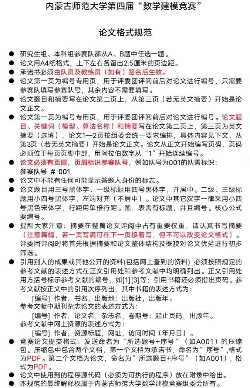 永利3044noc第四届“数学建模竞赛”论文格式规范